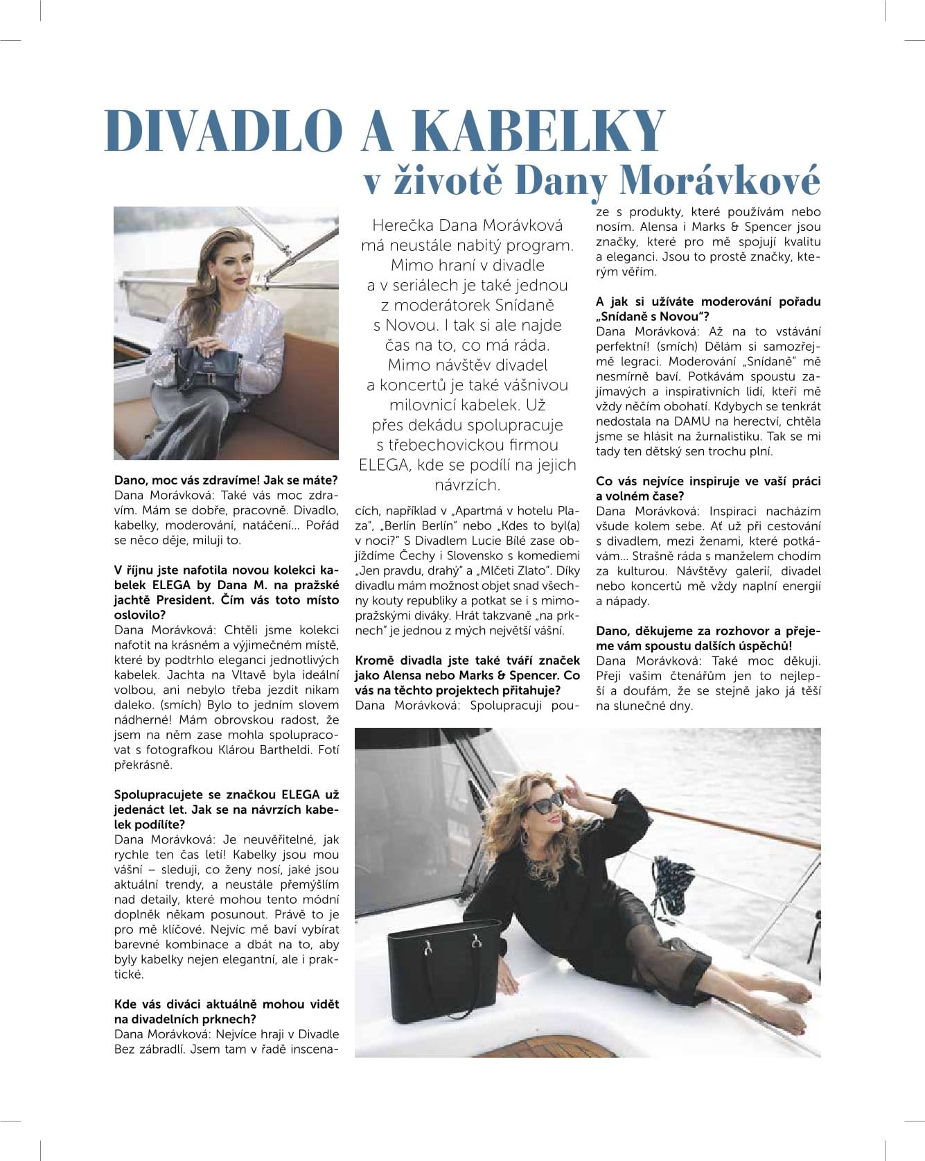 V červnovém čísle časopisu Glanc vyšel rozhovor s herečkou Danou Morávkovou, která se podílí na tvoření značky ELEGA by Dana M už více jak 10 let. Dana propůjčuje naší značce nejen tvář, ale vkládá do ní i své nápady a styl.