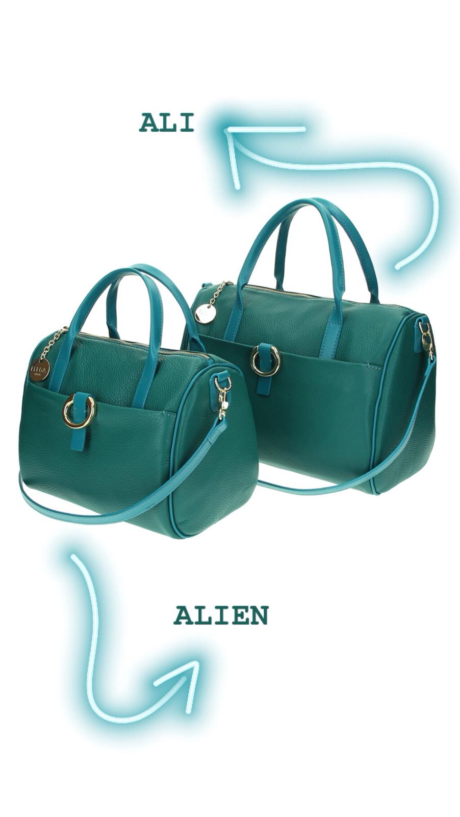 Pokud však chcete být za dámu, oceníte praktické Shopper větší Alis a menší Alisa. Obě tyto kabelky jdou nosit na rameni. Do Alis dáte i dokumety A4 a proto ji ocení každá zaměstnaná žena. Pokud jste rozená dámička, určitě se zamilujete do Baulettek Ali a Alien. Ali je velké praktické bauletko, které si vyzkoušela i naše blogerka Lucie.