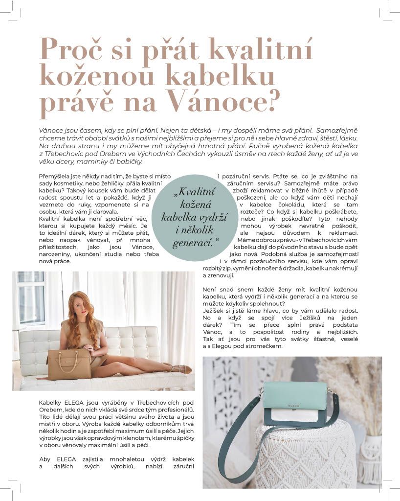 V prosincovém čísle časopisu GLANC jsme měli možnost říci, proč si koupit, či přát kvalitní koženou kabelku zrovna na Vánoce.