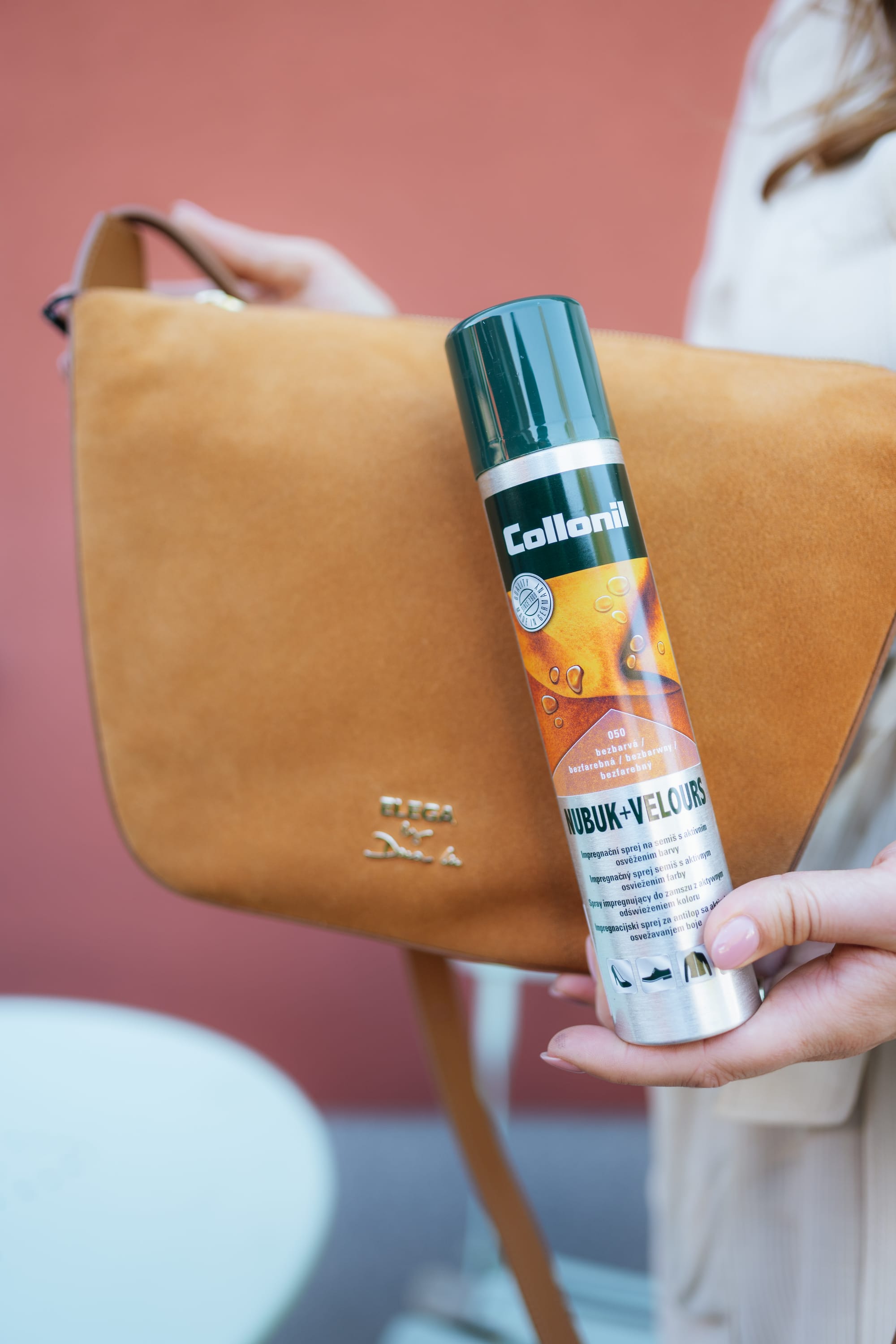 • Aplikujte jej pravidelně: my jsme kabelky naimpregnovali před prvním nošením za vás a vy pak opakujte každé 2-3 měsíce podle intenzity používání.